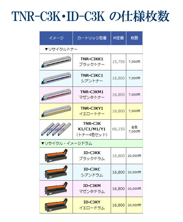 【OKI (オキ) リサイクルトナー TNR-C3Kシリーズ 単品販売 TNR-C3KK1 TNR-C3KC1 TNR-C3KM1 TNR-C3KY1】純正トナーではありません