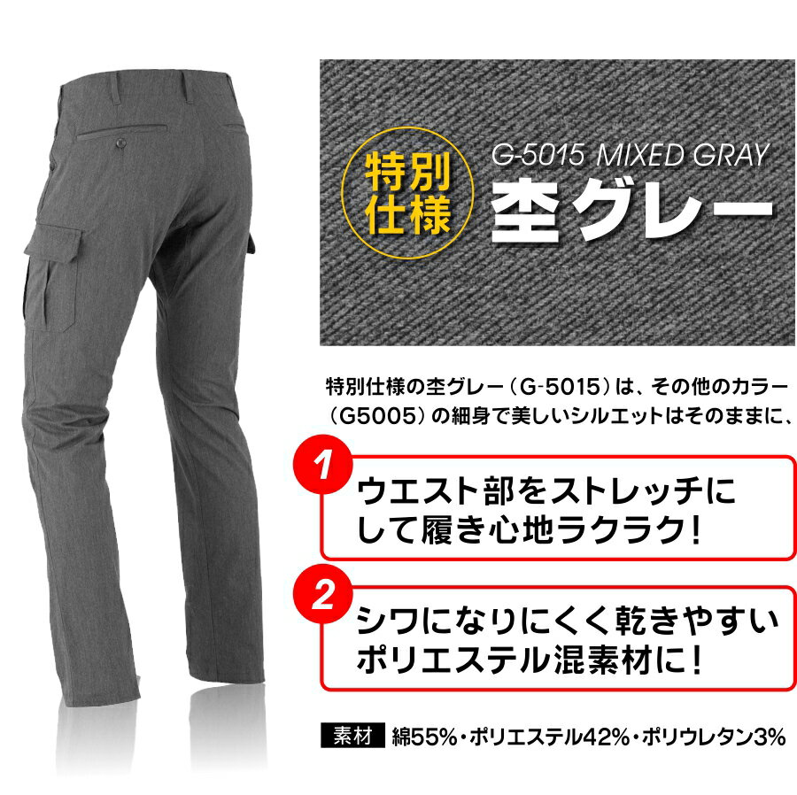 「GLADIATOR(グラディエーター)」スリムカーゴパンツ(Gカーゴ スタイリッシュ)/G5005/G-5015/【年間 作業服】* ワークパンツ 作業着 作業ズボン メンズ*