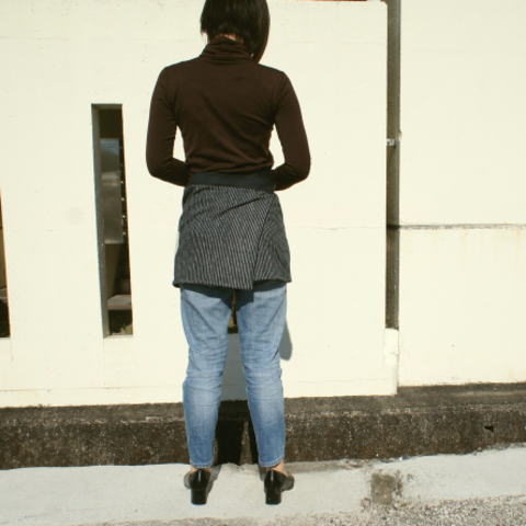 【着物素材使用】LLサイズ!縦縞紬にポケット付き手作りカフェエプロン【和柄】
