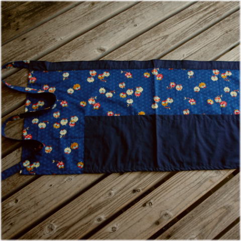 素材の良さを実感していただけるエプロンです! 【サイズ】Mサイズ 幅 88センチ 丈 36センチ 【素材】綿、ポリエステル 素材の良さを実感していただける手作りエプロンです!